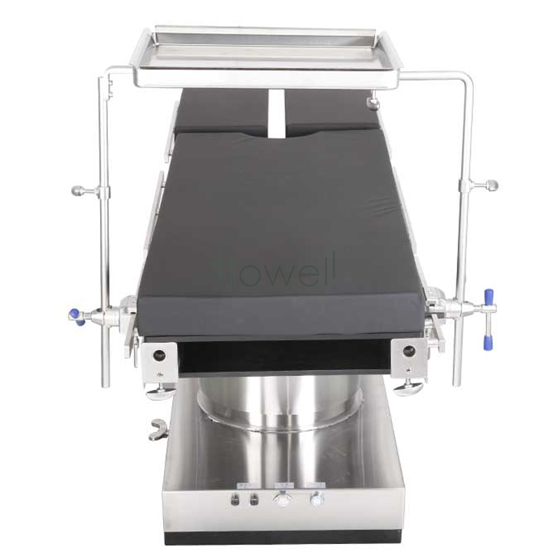 The surgery table tray is used to fix on the side rails of the surgical bed. Height can be adjusted. This product is specially designed for surgical instruments. The product is made of stainless steel, and the height of the product can be adjusted by the fixing clip. The maximum loading capacity of the pallet is 5kg.
